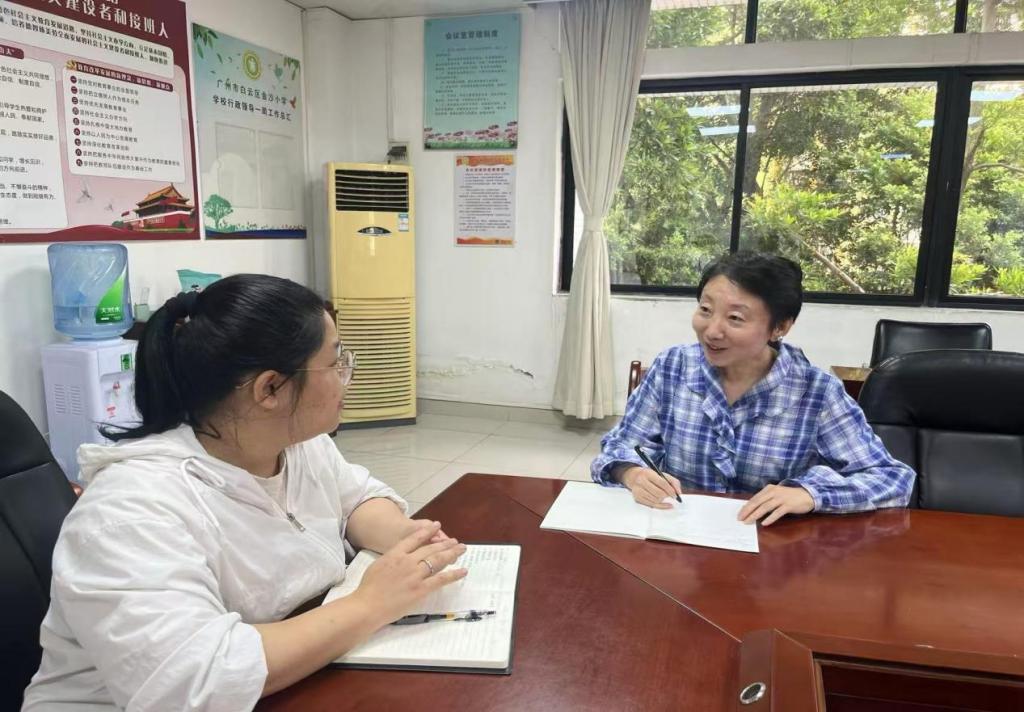 10月31日,王芳老师走访我院22级英语师范专业学生刘齐妹、李童桐、彭婕、吴铭珊四位同学集中实习的单广州市白云区金沙小学。四位同实习地点分别位于该校的校本部、南校区和东校区,本次期中检查先后到达三个校区现场走访了实习学生、指导老师了解实习中的具体情况,与校领导就学生实习总体表现进行座谈。