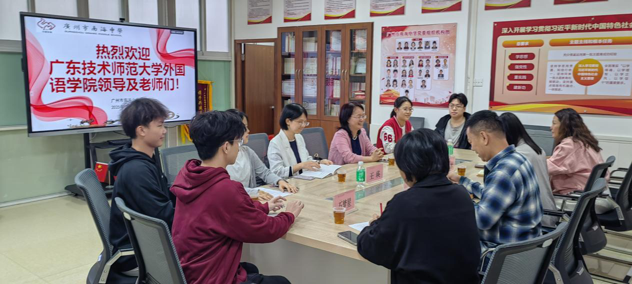 在交流会上,徐玲院长介绍了学校和学院的基本情况、学院办学特色与教育教学成果,感谢南海中学对学院实习工作的重视和支持,强调实践基地是衔接高校理论教学与中学一线实践的重要纽带。牛冰副校长对我院实习生表示高度认可,认为他们在实习工作中展现出扎实的专业素养、出色的教学能力以及敬业的工作精神,并对将来与我院发展多语种实习、师资培养、教学研究等方面的深度合作表达了殷切期望。双方一致表示,将以本次挂牌为契机,在实践教学、师资交流等方面开展更深层次合作,推动资源共享、优势互补,共同打造教育人才培养的优质平台。