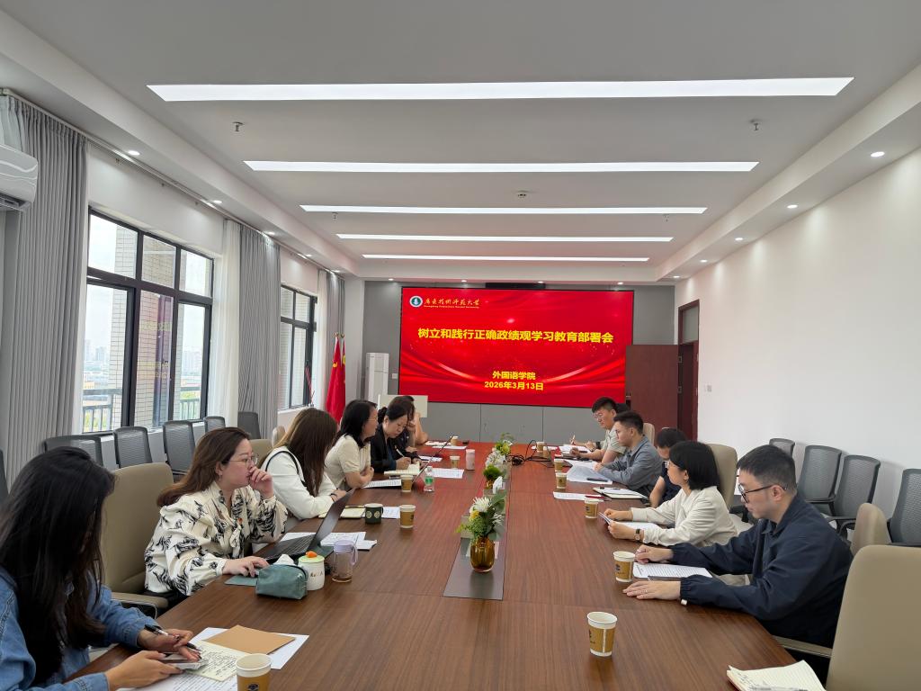3月13日上午,外国语学院召开树立和践行正确政绩观学习教育部署会。学院领导班子成员、各党支部书记、全体辅导员参加会议,学院院长徐玲主持会议并作动员部署。
