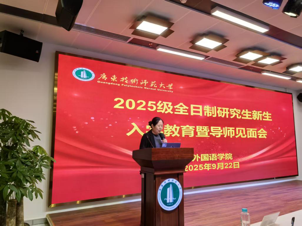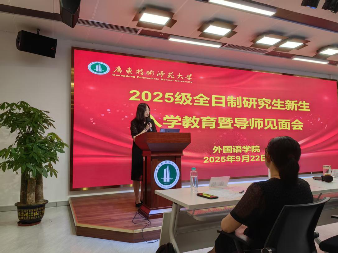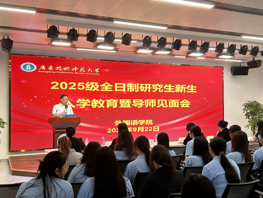 金秋九月,在这满载希望与收获的美好时节,外国语学院迎来了朝气蓬勃、怀揣梦想的2025级硕士研究生。9月22日上午,外国语学院2025级全日制研究生新生入学教育暨导师见面会在白云校区顺利举行,一场旨在帮助新生快速融入学术氛围、明确学习目标、开启研究生新篇章的重要活动正式拉开帷幕。